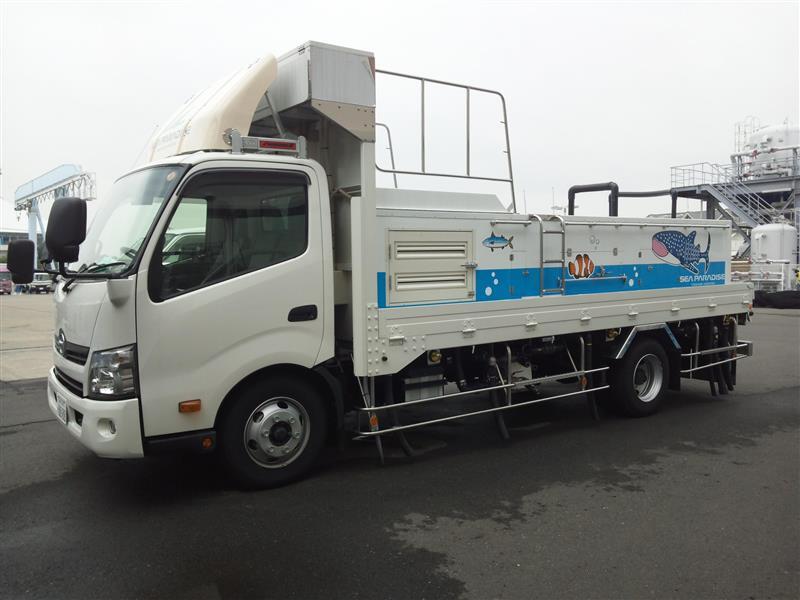 スタッフが活魚車に乗って海へと向かう!!